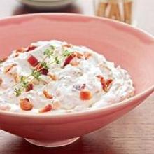 | Caramelized Onion-bacon Dip Recipe olive oil, thyme, pepper, onion, bacon, red wine vinegar, salt, cream cheese, sour cream This recipe makes approx. 2 cups... love the caramelized onions and bacon flavors... the recipe and photo are courtesy of Ladies' Home Journal 1. In a large nonstick skillet, heat oil over medium...