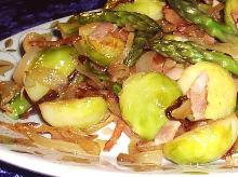 | Asparagus With Caramelized Onions & Bacon Recipe - Food.com pepper, onion, garlic, asparagus, bacon, salt A nice tasty side dish for those (like me) who like asparagus. Really easy and quick to make. Serving Size: 1 (180) g Servings Per Recipe: 4 AMT. PER SERVING % DAILY VALUE Calories: 171.8 Calories...