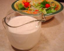 | Sour Cream Dressing Recipe - Food.com blue cheese, pepper, garlic, red wine vinegar, salt, mayonnaise, sour cream I have no idea where this recipe came from. It was passed down from my grandma to my mother & then to me. We LOVE to add extra garlic, one clove is never enough for us. Serving Size: 1 (74) g Ser...