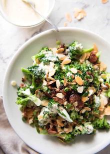 | Broccoli Salad with Sour Cream Dressing | RecipeTin Eats red onion, olive oil, almond, nuts, pepper, dried garlic, shallot, spring onion, garlic, broccoli, bacon, mustard, apple cider vinegar, white wine vinegar, salt, sugar, sour cream, milk Step up your everyday boring broccoli with this Broccoli Salad with a HEALTHY CREAMY Sour Cream Dressing! So good you can eat this as a meal! Mix the Sour Cream Dressing ingredients together in a bowl...