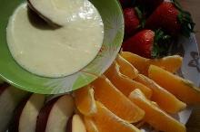 Orange Cream Sauce For Fruit Recipe butter, egg yolks, lemon peel, salt, sugar, orange juice, cream, flour This is so good you could just eat with a spoon. beat egg yolks with sugar in top of double boiler until thick and lemon colored. stir in flour and salt, the orange juice and lemon rind cook over si...