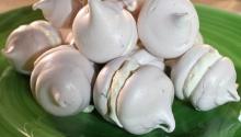 | Strawberry cream-filled meringues recipe - BBC Food egg whites, icing sugar, strawberry, sugar, double cream Preheat the oven to 130C/275F/Gas 1. For the meringue, whisk the egg whites in a clean bowl until soft peaks form when the whisk is removed. Gradually add the caster sugar, whisking continuously, unt...