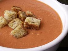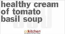 | Healthy Cream of Tomato-Basil Soup Recipe | CDKitchen.com pepper, basil, tomato, salt, cream cheese, bread, tomato juice, milk A recipe for Healthy Cream of Tomato-Basil Soup made with tomato, tomato juice, fresh basil, 1% low-fat milk, salt, black pepper, cream cheese Bring tomato and juice to a boil in a large saucepan. Red...