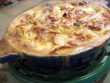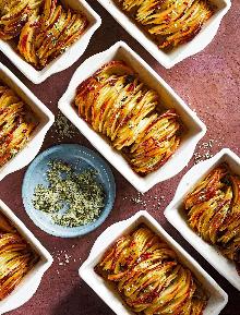 | Crispy Potato Roast Recipe butter, chili dried/powder, olive oil, thyme, potato, shallot, salt Both gooey and crispy, this side dish might just bump mashed potatoes off the holiday table for good. Preheat oven to 375 degrees F. In a small bowl, combine butter and oil. Brush bottom of a round 9-...