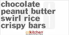 | Chocolate Peanut Butter Swirl Rice Crispy Bars Recipe | CDKitchen.com rice cereal, peanut butter, chips, light corn syrup, sugar, chocolate A recipe for Chocolate Peanut Butter Swirl Rice Crispy Bars made with sugar, light corn syrup, chunky peanut butter, crisped rice cereal, chocolate chunks or In a large saucepan, combine sugar and syr...