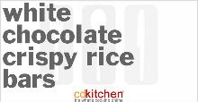 | White Chocolate Crispy Rice Bars Recipe | CDKitchen.com butter, rice cereal, oil, sugar, cocoa powder, marshmallow, white chocolate, water A recipe for White Chocolate Crispy Rice Bars made with butter, miniature marshmallows, rice cereal, white chocolate chips, vegetable oil Melt butter in large saucepan over low heat. Add marshmallows,...