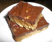 | Candy Bar Rice Krispy Squares Recipe | CDKitchen.com butter, candy/chocolate bar, rice cereal, caramel, nuts, milk chocolate A recipe for Candy Bar Rice Krispy Squares made with caramel coated candy bars, butter, rice krispies, milk chocolate chips Melt butter and candy bars over medium-low heat in a large saucepan until sm...