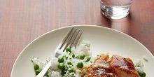 | Crispy Ham and Cheese Chicken with Sweet Peas and Rice Recipe chicken breast, olive oil, pepper, chives, peas, ham, mustard, rice, cheese Comforting chicken and rice is even more delicious when salty, savory ham and gooey cheese are added to the mix. Heat oven to 425 degrees F. Line a rimmed baking sheet with nonstick foil. In a small b...