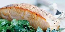 Crispy Salmon with Herb Salad Recipe | MyRecipes olive oil, cooking spray, pepper, parsley, mint, coriander leaf, basil, lemon, garlic, garden rocket, salmon, salt, lemon juice Rest salmon fillets atop fresh herbs tossed with a light lemon dressing. Because they're left whole, use small basil and mint leaves; if you have only large leaves, tear them in half. Refrigerate ...