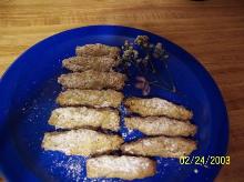 | Peanut Butter Crispy Bread Sticks Recipe oil, peanut butter, salt, bread Something to do with that day old bread. Tasty treat that will keep crisp for a long time in an airtight container. Trim bread and save crusts. Cut into strips 1/2 x 1/4. Place bread strips and crus...