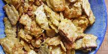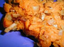 | Crispy Fried Sweet Potatoes Recipe - Food.com sweet potato, onion, bacon, salt, sugar These sweet potatoes are boiled, then diced and fried until crispy with bacon, a touch of sugar and onions. Cooking time includes boiling of potatoes. Really good! Serving Size: 1 (195) g Servings Pe...