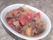 | Crispy Sweet and Sour Pork Recipe - Food.com green bell pepper, cornstarch, canola oil, pineapple, onion, eggs, pork, apple cider vinegar, soy sauce, salt, tomato ketchup/catsup, rice, sugar, pineapple juice, water, flour While there are many recipes on Zaar for Sweet and Sour Pork, this is one that keeps the pork crispy. After finding this recipe years ago, I've used no other. Leftover pork roast or some thick, co...