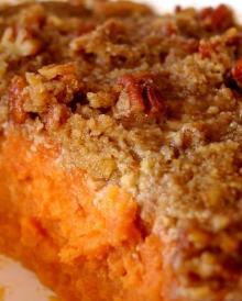 | Crispy Streuseled Sweet Potato Casserole Recipe - Food.com butter, cooking spray, pecan, vanilla extract, sweet potato, eggs, salt, maple syrup, brown sugar, half and half, flour This is very good, not too sweet; a nice alternative to the marshmallow topped version. I got the recipe from Cooking Light Magazine and it is one I will be fixing for this Thanksgiving. Serving Size:...