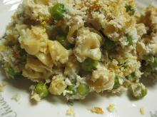 | Crispy-On-The-Top Tuna and Green Pea Casserole (Rocco Dispirito) Recipe - Food.com cooking spray, wheat, pepper, peas, tuna, mustard, salt, cheddar cheese, panko bread crumbs, sour cream, yogurt (plain) Serving Size: 1 (212) g Servings Per Recipe: 6 AMT. PER SERVING % DAILY VALUE Calories: 363.9 Calories from Fat 103 g 29 % Total Fat 11.6 g 17 % Saturated Fat 5.8 g 29 % Cholesterol 60.7 mg 20 ...