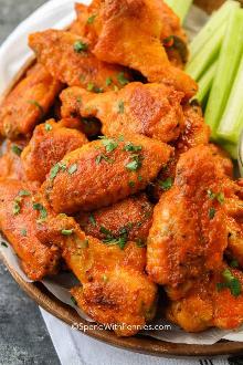 | Crispy Buffalo Wings Recipe - NatashasKitchen.com butter, buffalo, chicken wing, frankfurter, hot sauce, dried garlic, salt, baking powder, brown sugar, sugar Buffalo Wings are irresistible with the best 3-ingredient homemade buffalo sauce. An easy, restaurant-quality chicken wings appetizer. Thoroughly pat dry the chicken with a paper towel. Preheat the ov...