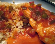 | Crock Pot Pizza Chicken Recipe chicken breast, tomato paste, green bell pepper, mushroom soup, tomato soup, pepper, parsley, oregano, bay leaf, basil, onion, salt, water This is a simple way to make something the family will love - pizza! It has everything ounce of goodness without the crust! What's great about the cooking is, you use a crock pot, not the oven! P...