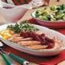 | Crock Pot Cranberry Chicken Recipe | SparkRecipes chicken breast, cranberry sauce, onion soup mix, berries, orange juice I like to serve this during the summer with mashed potatoes and glazed carrots. Very reminscent of Thanksgiving, which is nice when the wheather is so hot you forget about the holidays! Place chicken ...