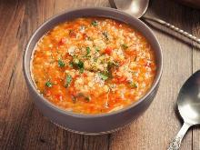 | Crock Pot Lentil Beef Soup Recipe - Food.com tomato paste, red bell pepper, chicken stock, thyme, pepper, oregano, cayenne pepper, cumin, lentil, carrot, onion, celery, tomato, beef, salt, flour Easy & Delicious! Serving Size: 1 (349) g Servings Per Recipe: 8 AMT. PER SERVING % DAILY VALUE Calories: 141.8 Calories from Fat 14 g 10 % Total Fat 1.6 g 2 % Saturated Fat 0.4 g 1 % Chole...