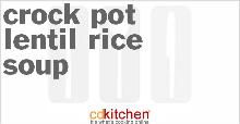 | Crock Pot Lentil Rice Soup Recipe | CDKitchen.com brown rice, chicken stock, pepper, oregano, dried garlic, bay leaf, lentil, mushrooms, carrot, onion, celery, salt, water A recipe for Lentil Rice Soup made in the crock pot made with dry lentils, brown rice, carrots, celery, onion, water, chicken broth, garlic powder Combine the lentils, rice, carrots, celery, onion, wa...