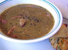 | Canadian Bacon Split Pea & Lentil Soup (Crock Pot) Recipe - Food.com canadian bacon, split peas, hot sauce, vegetable stock, dry sherry, thyme, sage, pepper, marjoram, chives, bay leaf, lentil, onion, garlic, salt, water Made this up tonight. I compared some recipes and then used what I had. Turned out very tasty! Bet it would be good vegetarian too. Great served with herbed croutons and shredded Parmesan cheese! Serv...