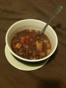 | Crock Pot Beef Lentil Soup Recipe - Food.com beef stock, soup, pepper, marjoram, lentil, potato, carrot, onion, celery, tomato, cabbage, salt, water, meat This recipe was printed in our local paper. I was looking for recipes to use the soup bones I got when purchasing a side of beef from our local farmer. This is thick and rich and so easy to toss in th...