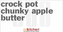 | Crock Pot Chunky Apple Butter Recipe | CDKitchen.com cloves, cinnamon, apple, salt, sugar A 5-star recipe for Chunky Apple Butter made in the crock pot made with sugar, ground cinnamon, ground cloves, salt Combine the sugar, cinnamon, cloves, and salt. Chop the apples coarsely (you can pee...