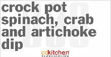 | Crock Pot Spinach, Crab And Artichoke Dip Recipe | CDKitchen.com hot sauce, artichoke, spinach, crab, cream cheese A 5-star recipe for Spinach, Crab And Artichoke Dip made in the crock pot made with frozen chopped spinach, cream cheese, artichoke hearts, crab meat, hot pepper Combine spinach, cream cheese, articho...