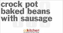 | Crock Pot Baked Beans With Sausage Recipe | CDKitchen.com great northern bean, pepper, kidney bean, pinto bean, onion, sausage, mustard, tomato ketchup/catsup, maple syrup, brown sugar A 5-star recipe for Baked Beans With Sausage made in the crock pot made with pinto beans, kidney beans, Great Northern beans, smoked sausage, ketchup, onion, maple In a crock pot, combine the beans, s...