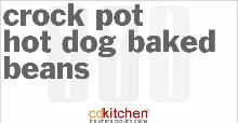 | Crock Pot Hot Dog Baked Beans Recipe | CDKitchen.com baked beans, hot dog, dried onion, onion, barbecue sauce, tomato ketchup/catsup, molasses, sugar A recipe for Hot Dog Baked Beans made in the crock pot made with baked beans, onion powder, ketchup, sugar, onion, molasses, barbecue sauce, hot Combine all the ingredients in the crock pot and stir t...