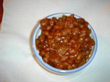 | Classic Crock Pot Boston Baked Beans Recipe - Food.com baked beans, green pepper, onion, bacon, mustard, barbecue sauce, tomato ketchup/catsup, brown sugar Great to serve with BBQ. Easy to prepare, you can fix it and forget it for a few hours. Serving Size: 1 (237) g Servings Per Recipe: 6 AMT. PER SERVING % DAILY VALUE Calories: 299.4 Calories from ...