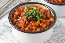 | Crock-Pot Baked Beans in Tomato Sauce Recipe - Food.com chili dried/powder, pepper, mustard powder, navy bean, onion, bacon, tomato ketchup/catsup, seasoning, molasses, brown sugar, tomato juice, water Very easy, I think it tastes best when cooked slow and I found with my slow cooker I had to cook for an hour or two longer than the recipe says. My hubby loves this recipe! Serving Size: 1 (368) g Se...