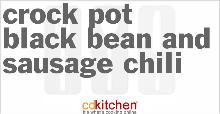 | Crock Pot Black Bean And Sausage Chili Recipe | CDKitchen.com chili dried/powder, black beans, ground beef, oregano, jalapeno, cumin, onion, garlic, tomato, sausage, salt A recipe for Black Bean And Sausage Chili made in the crock pot made with breakfast sausage, ground beef, chili powder, ground oregano, salt, cumin, garlic Chop onions, garlic and jalapenos in food pr...