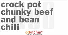 | Crock Pot Chunky Beef And Bean Chili Recipe | CDKitchen.com chili dried/powder, ground beef, pepper, cumin, pinto bean, onion, tomato, salt, salsa A recipe for Chunky Beef And Bean Chili made in the crock pot made with ground beef, onion, chili powder, cumin, diced tomatoes, pinto beans, salsa, salt and Heat large skillet over medium-high heat. ...