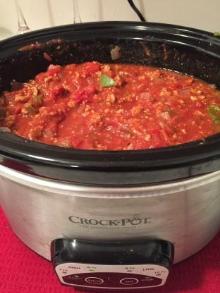 | Crock Pot Chili Chili and Beans Recipe - Food.com beef stewing meat, tomato sauce, chipotle, green bell pepper, chili dried/powder, beef stock, olive oil, pepper, oregano, fennel seeds, green chili, cayenne pepper, cumin, pinto bean, onion, garlic, tomato, salt, sugar, cocoa powder, flour Try Crock Pot Chili Chili and Beans from Food.com. - 46332 Serving Size: 1 (399) g Servings Per Recipe: 12 AMT. PER SERVING % DAILY VALUE Calories: 374.7 Calories from Fat 58 g 16 % Total Fat 6.5...