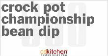 | Crock Pot Championship Bean Dip Recipe | CDKitchen.com chili dried/powder, picante sauce, refried beans, cumin, monterey jack cheese, cheddar cheese, cream cheese, sour cream A recipe for Championship Bean Dip made in the crock pot made with refried beans, picante sauce, monterey jack cheese, cheddar cheese, sour cream, cream Lightly grease the bottom and sides of the croc...