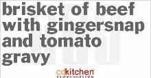 | Crock Pot Brisket Of Beef With Gingersnap And Tomato Gravy Recipe | CDKitchen.com ginger cookie/biscuit, onion soup mix, pepper, tomato, salt, water A recipe for Brisket Of Beef With Gingersnap And Tomato Gravy made in the crock pot made with brisket, tomatoes, onion soup mix, water, gingersnap cookies, salt and Place the brisket in a roasting pan...