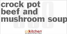 | Crock Pot Beef And Mushroom Soup Recipe | CDKitchen.com beef stewing meat, beef stock, thyme, dried garlic, mushrooms, carrot, celery, rice, sherry A recipe for Beef And Mushroom Soup made in the crock pot made with mushrooms, carrot, celery, rice, beef stew meat, beef broth, sherry, dried thyme, garlic Place the mushrooms, carrots, and celery in...