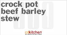 | Crock Pot Beef Barley Stew Recipe | CDKitchen.com beef stewing meat, tomato sauce, oil, barley, pepper, paprika, oregano, carrot, onion, celery, green beans, sweetcorn, salt, water A 5-star recipe for Beef Barley Stew made in the crock pot made with beef stew meat, onion, vegetable oil, water, tomato sauce, carrots, celery, salt, dried In a skillet, brown beef and onion in oil; ...