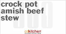 | Crock Pot Amish Beef Stew Recipe | CDKitchen.com butter, beef stewing meat, potato, carrot, onion, celery, salt, tomato juice, flour A recipe for Amish Beef Stew made in the crock pot made with beef stew meat, flour, butter, onion, potatoes, carrots, celery, salt, tomato Dust the meat with flour; brown in butter in skillet. Add the...
