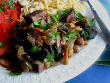 | Beef Stew Provencal - Crock Pot Recipe beef stewing meat, tomato paste, beef stock, olive oil, thyme, rosemary, pepper, cloves, bay leaf, potato, carrot, onion, garlic, tomato, salt, noodles, red wine Nice crock pot recipe. You can serve this over egg noodles or boiled potatoes, or even over rice Heat oil in a small Dutch oven over low heat. Add garlic; cook 5 minutes or until garlic is fragrant, ...