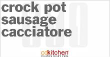 | Crock Pot Sausage Cacciatore Recipe | CDKitchen.com pasta sauce, red bell pepper, green bell pepper, rosemary, mushrooms, onion, garlic, tomato, sausage, marinara sauce, fortified wine A recipe for Sausage Cacciatore made in the crock pot made with Italian sausage, garlic, onion, green bell peppers, red bell peppers, mushrooms, marsala Place Italian sausage in frying pan or bake in ...