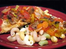 | Crock-Pot Cacciatore Recipe - Food.com chicken breast, tomato paste, chicken stock, parsley, oregano, mushrooms, carrot, onion, garlic, tomato, seasoning, pasta, white wine A very Hearty dish, that is easy to put together. You can finish plating this dish with either a dallop of sour cream, or by sprinkling some grated parmesan and mozzerella cheeses on top. Serving Size...