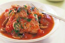 | Crock Pot Chicken Cacciatore Recipe - Italian.Food.com chicken thigh, green pepper, onion, garlic, zucchini/courgette, tomato I originally got this recipe from WW. It's become such a staple around our house. I've added a few more veggies to it to make it a more complete meal. It's designed for a smaller crock pot...
