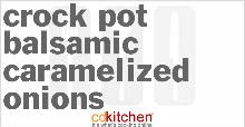 Crock Pot Balsamic Caramelized Onions Recipe | CDKitchen.com butter, onion, balsamic vinegar, salt A recipe for Balsamic Caramelized Onions made in the crock pot made with onions, butter, balsamic vinegar Combine all ingredients in the container of a crock pot (or other slow cooker). Cover and cook...