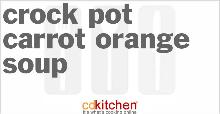 | Crock Pot Carrot-Orange Soup Recipe | CDKitchen.com vegetable stock, pepper, ginger root, carrot, onion, salt, orange juice, whipped cream A recipe for Carrot-Orange Soup made in the crock pot made with carrots, onions, vegetable broth, fresh ginger, orange juice, whipping cream, salt and Combine carrots and onions in crock pot. Add brot...