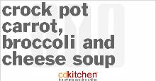 | Crock Pot Carrot, Broccoli And Cheese Soup Recipe | CDKitchen.com chicken soup, velveeta cheese, mushroom soup, pepper, potato, carrot, onion, broccoli, salt, water A recipe for Carrot, Broccoli And Cheese Soup made in the crock pot made with frozen broccoli, potatoes, onion, carrots, cream of mushroom soup, cream of chicken soup Place all ingredients in slow coo...