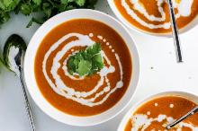 | Red Lentil and Carrot Soup With Coconut for the Crock Pot Recipe - Food.com hot sauce, vegetable stock, chicken stock, olive oil, turmeric, pepper, coriander, cumin, lentil, coconut milk, carrot, onion, garlic, tomato, salt, lemon juice The coconut milk in this recipe creates a nutty and interesting flavor. Serving Size: 1 (323) g Servings Per Recipe: 5 AMT. PER SERVING % DAILY VALUE Calories: 358.7 Calories from Fat 45 g 13 % T...
