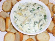 | Crock Pot Artichoke Cheese Dip Recipe - Food.com red pepper, garlic, artichoke, mayonnaise, parmesan cheese, mozzarella cheese Serve with sliced baguettes or your favorite crackers Serving Size: 1 (56) g Servings Per Recipe: 15 AMT. PER SERVING % DAILY VALUE Calories: 188.8 Calories from Fat 125 g 66 % Total Fat 13.9 g 2...