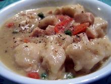 | Easy, Creamy Crock Pot Chicken And Dumplings Recipe | CDKitchen.com butter, chicken breast, biscuit mix, chicken soup, onion, water A scrumptious recipe that anybody can make. The slow cooker does all the hard work making the creamy chicken soup, and sliced biscuit dough makes crazy easy, crazy good dumplings. Combine the chicken,...