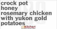 | Crock Pot Honey-Rosemary Chicken With Yukon Gold Potatoes Recipe | CDKitchen.com chicken thigh, cornstarch, oil, rosemary, pepper, potato, onion, garlic, salt, honey, lemon juice A recipe for Honey-Rosemary Chicken With Yukon Gold Potatoes made in the crock pot made with skinless bone-in chicken thighs, vegetable oil, Yukon Gold potatoes, onions, garlic Rinse chicken and pat d...